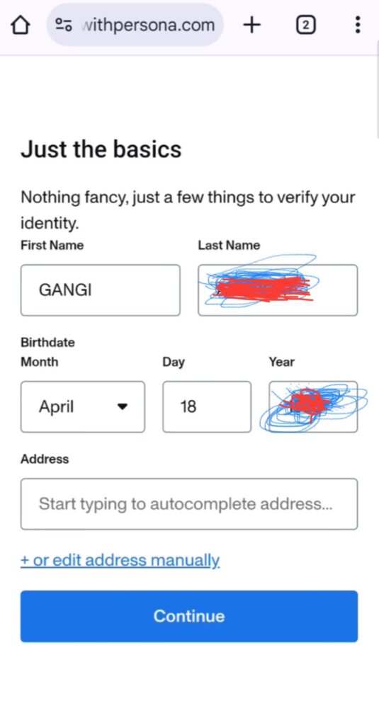 ఐడి సక్సెస్ఫుల్గా అప్లోడ్ అయిన తర్వాత కింద ఐడి మీద ఎలాగైతే పేరు ఉందో స్మాల్ లెటర్స్ తో ఉండే స్మాల్ లెటర్స్ క్యాపిటల్ లెటర్స్ తో ఉండే క్యాపిటల్ లెటర్స్ తో మీ పేరు ఫస్ట్ నేమ్ సెకండ్ నేమ్ మీ డేట్ అఫ్ బర్త్ ఐడి మీద ఉన్నాయా డేట్ అఫ్ బర్త్ ఇవ్వాలి ఇచ్చేసిన తర్వాత కింద అడ్రస్ కూడా ఇవ్వాలి మన అడ్రస్ పూర్తి అడ్రస్ ఇవ్వాలి